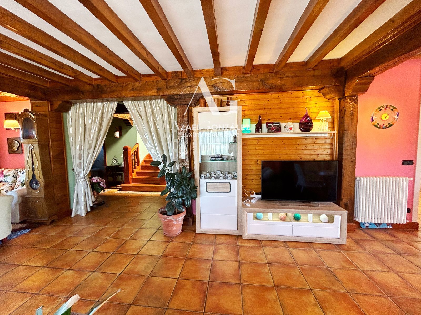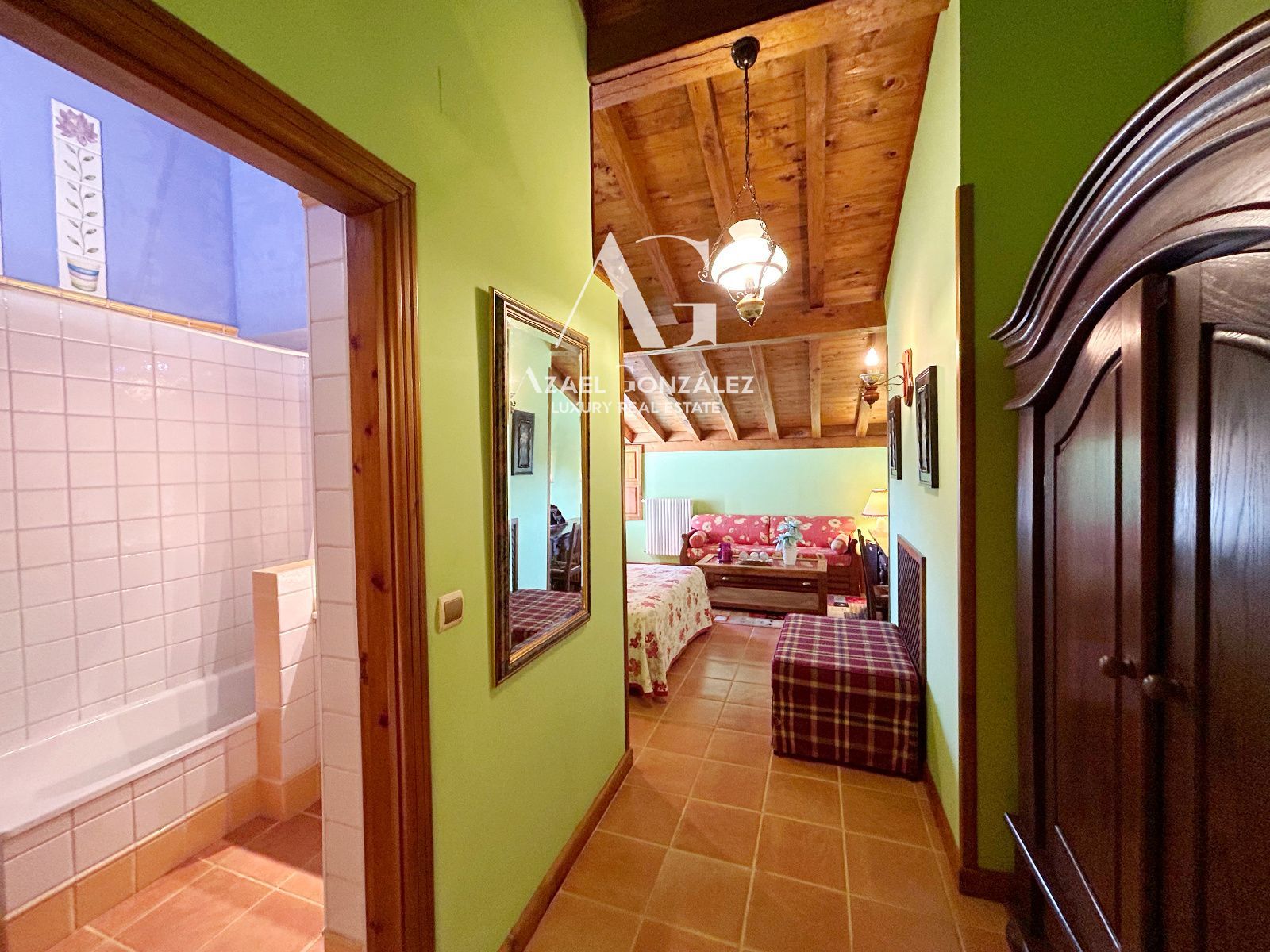 Con una construcción de estilo montañés tradicional y materiales de alta calidad, como la carpintería de roble y castaño y los muros de piedra y ladrillo macizo, esta propiedad ofrece una atmósfera cálida y acogedora, a la vez que mantiene su carácter rústico y auténtico.