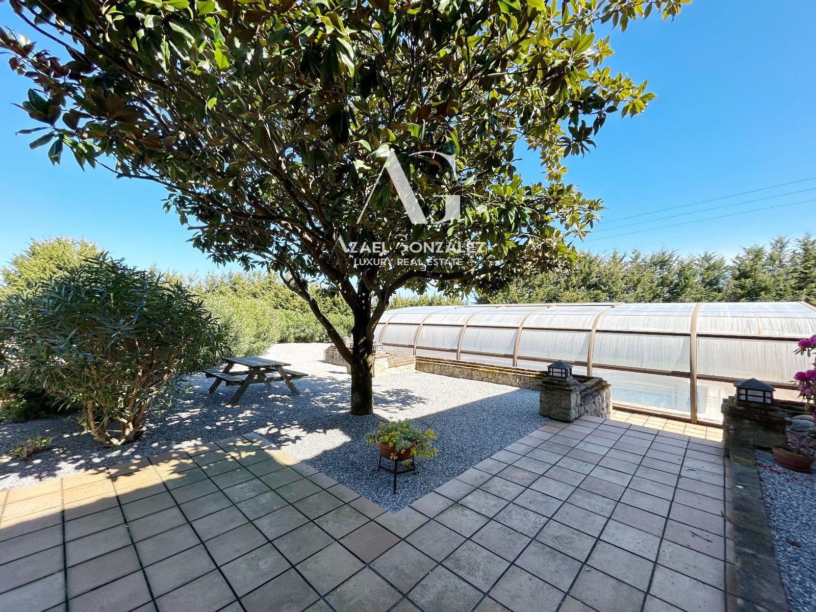 Vivir aquí te permitirá disfrutar de la tranquilidad y belleza del entorno natural, con senderos que invitan a explorar y mesas de picnic dispersas por el jardín para disfrutar de momentos de relajación al aire libre. Además, la propiedad cuenta con amplias zonas de aparcamiento al aire libre para mayor comodidad.